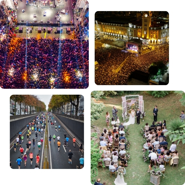 Registre o seu evento com imagens aéreas impactantes e qualidade profissional. Realizamos captação com drone para casamentos, shows, eventos corporativos e esportivos, criando vídeos com ângulos exclusivos, tomadas amplas e movimentos suaves que valorizam cada momento e elevam o nível da produção.